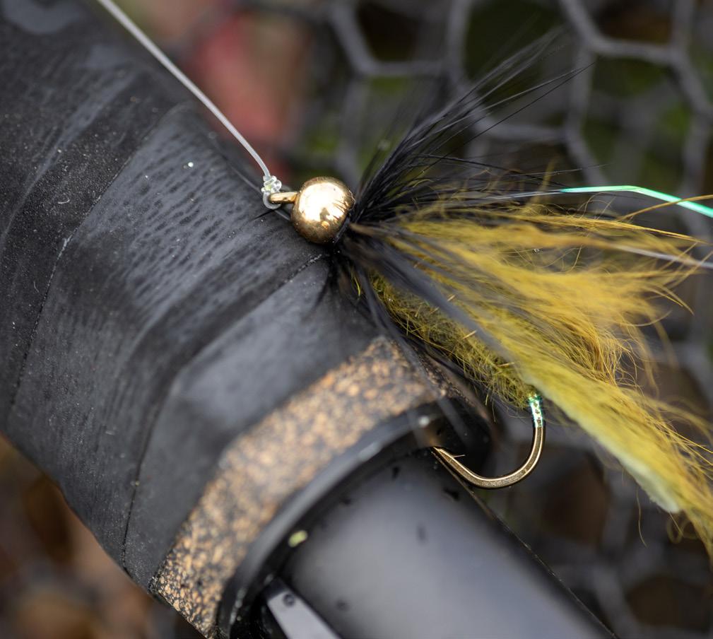 längre flugor på sju-åtta centimeter och använder gärna mönster i färger som syns. Det underlättar om man ser flugan på långt håll så man enkelt kan se om det är någon öring som följer flugan.