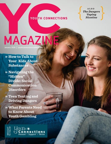 Remember – you don’t have to keep this hard copy of the magazine (if you don’t want to). You can re-read all the past issues on our website: youthconnectionscoalition.org and click on the Magazine tab. Often you may not be currently addressing a topic we’ve covered, but you certainly will at some point. Please use our website as your personal library. You can even search for topics!