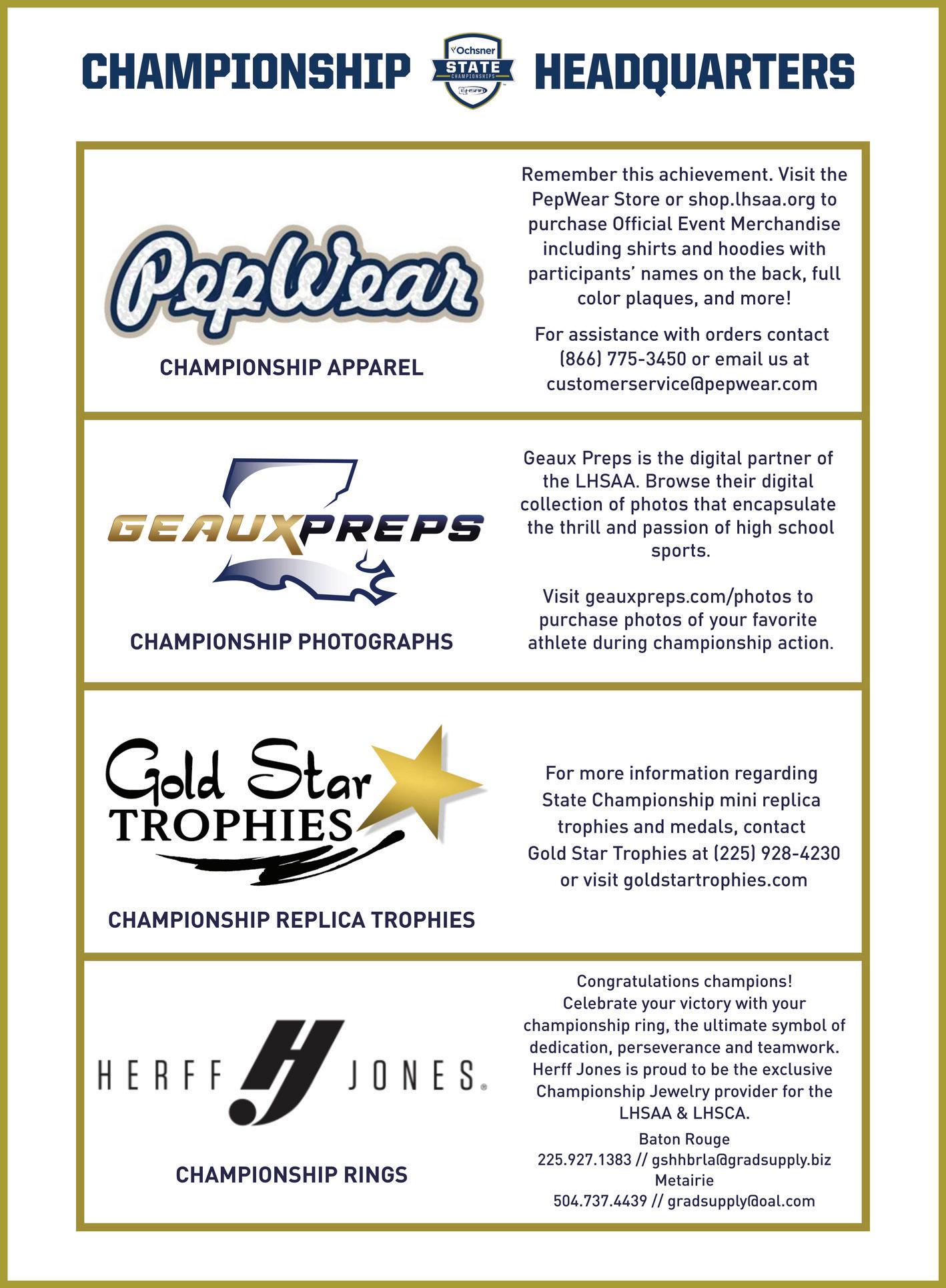 2023-24 LHSAA STATE CHAMPIONSHIPS MERCHANDISE POWERED BY OFFICIAL EVENT MERCHANDISER OF THE LHSAA ORDER TODAY! GET YOURS AT SHOP.LHSAA.ORG 2023-24 LHSAA STATE CHAMPIONSHIPS MERCHANDISE