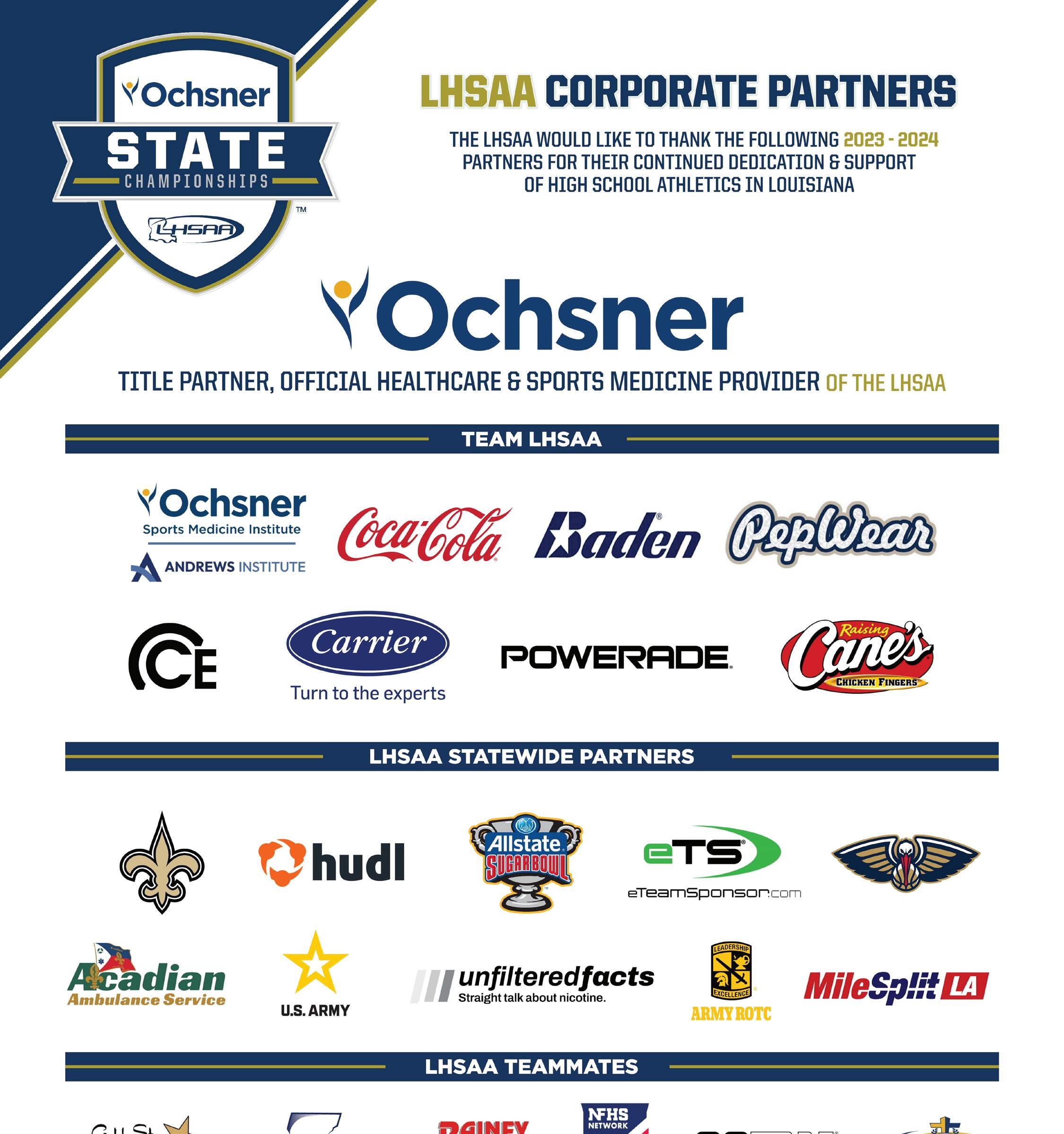 The Louisiana High School Athletic Association (LHSAA) has a rich history of promoting academics, the safety of participants, competition, sportsmanship, and the life-long values athletics fosters. As the LHSAA advances its mission and continues its legacy, Ochsner Health is proud to serve as the organization’s official healthcare provider and the title sponsor of its state championship events-one of which you are attending today, cheering on your student-athletes.