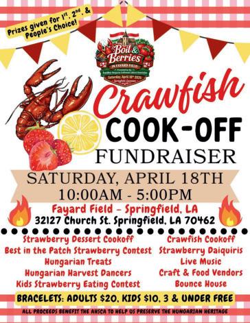 5/2 — Riff Ridgel Crawfish Cookoff Tickfaw Festival Grounds • 11-4 PM riffridgelcrawfishcookoff@gmail.com