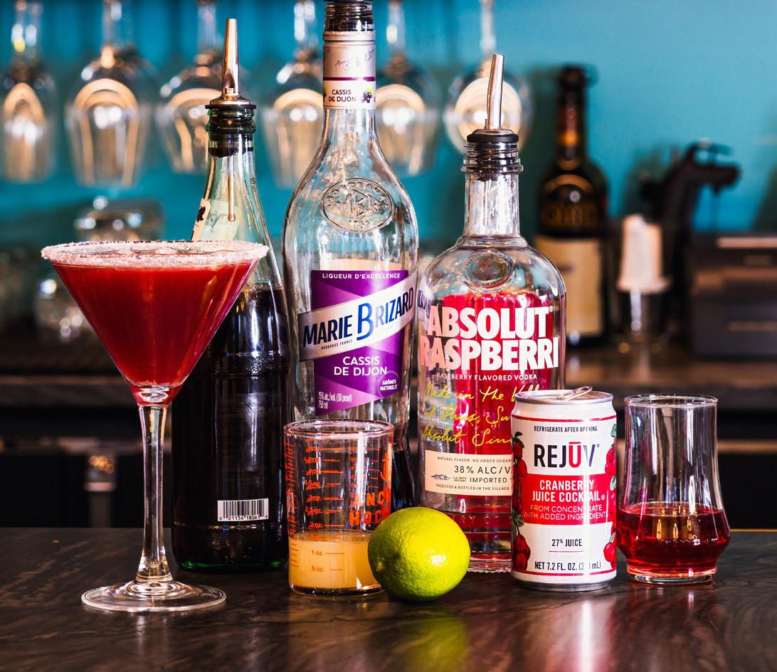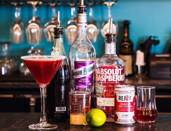 • .75 oz. crème de cassis Rim a martini glass with sugar