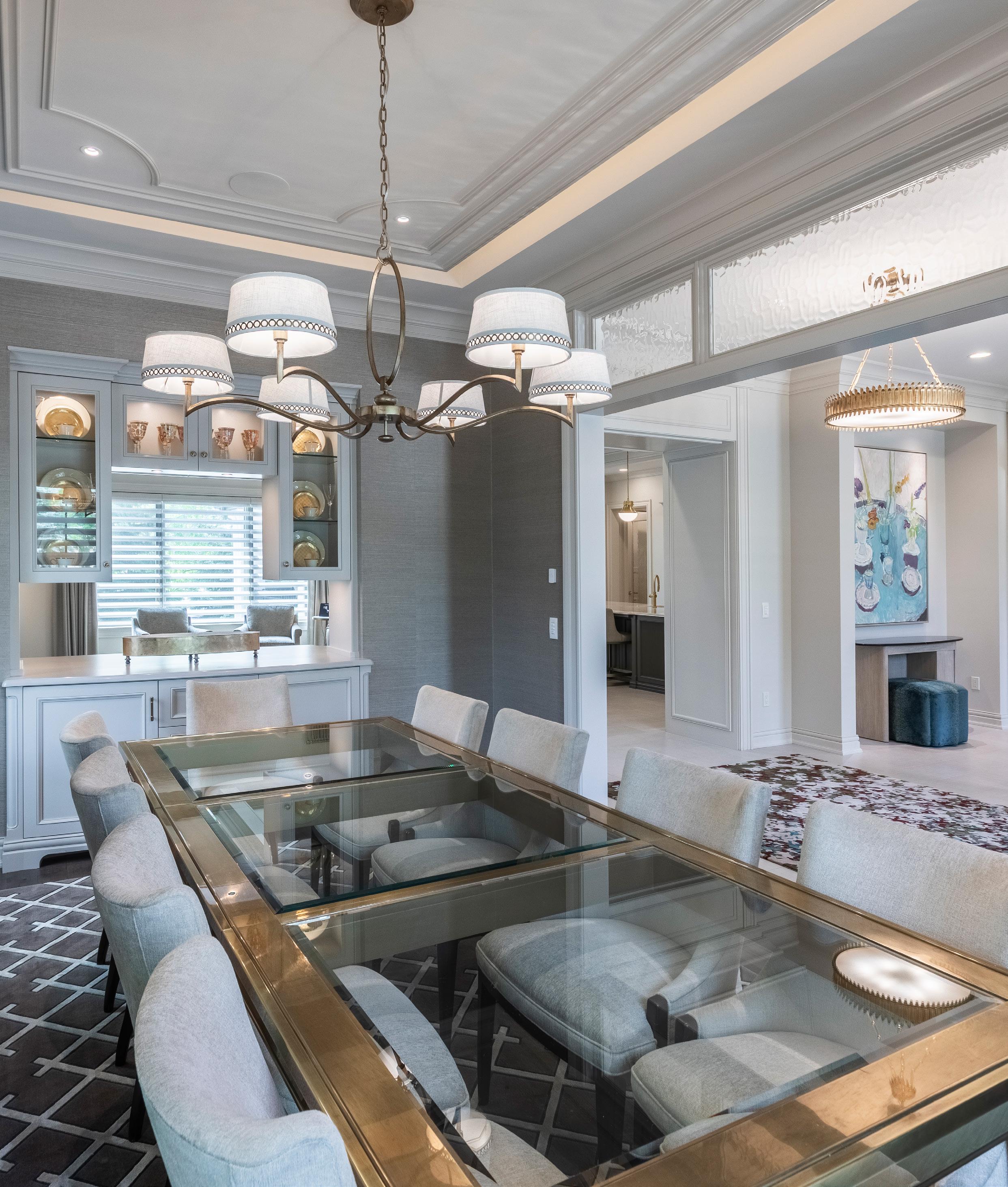 With an open floor plan and high-end finishes featured throughout, including custom cabinetry, layered ceiling details, and elegant lighting selections, Patton said the basic difference this time was size and overall design. “While this is a different type of home, the basic elements are the same: it’s somewhere to live, entertain, and be comfortable,” she said. “All decisions we made kept this in mind and were of the utmost importance. Even before the hole was dug or the frame was up, we met several times to discuss materials and finishes so we were ready for next steps.”