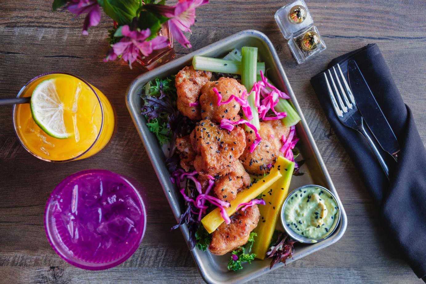 choice of herb-crusted seitan or crispy cauliflower—are slathered in the unique sauce that is bolstered by Fifth House’s in-house honey. Not a natural vegan product, Smith has perfected his honey creation by cooking down apple juice with chicory root, licorice root, and chamomile. “It literally tastes just like honey,” Smith said. “It’s wild.” Fresh ginger, garlic, and dried chiles give the hot honey sauce its kick.