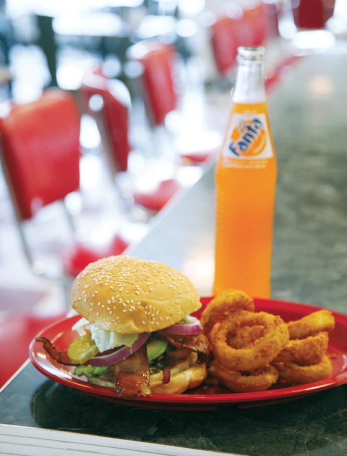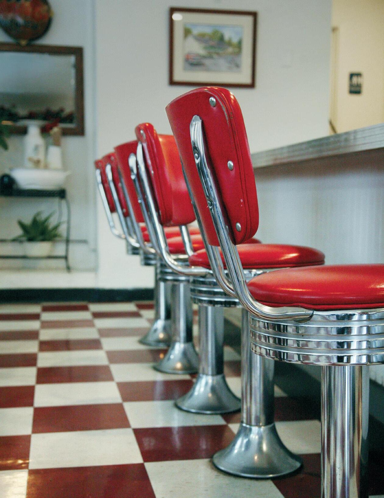 At JJ’s Homemade Burgers in San Juan Bautista, counter stool seating allows for peeks into the kitchen—and transmits old-school vibes, relatively speaking—until you view the carved scrawl on a weathered cement block, in the floor, by the front window, under a table, bordered by the vintage checkered flooring. It reads: “Dec 1 1919.”