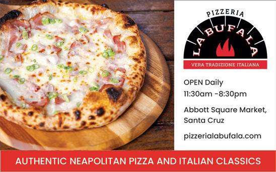 Located in downtown Santa Cruz’s lively Abbott Square Market, Pizzeria La Bufala has been serving authentic Neapolitan pizza since 2017. This cozy spot offers a wide variety of wood-fired pizzas along with favorite Italian dishes like lasagna, gnocchi, meatballs, eggplant parmigiana and tiramisu. The authentic Italian tradition shines through in every dish, making it a beloved destination for tourists and locals alike. Open Su–Th 11:30am–8:30pm, F–Sa 11:30am–9pm.