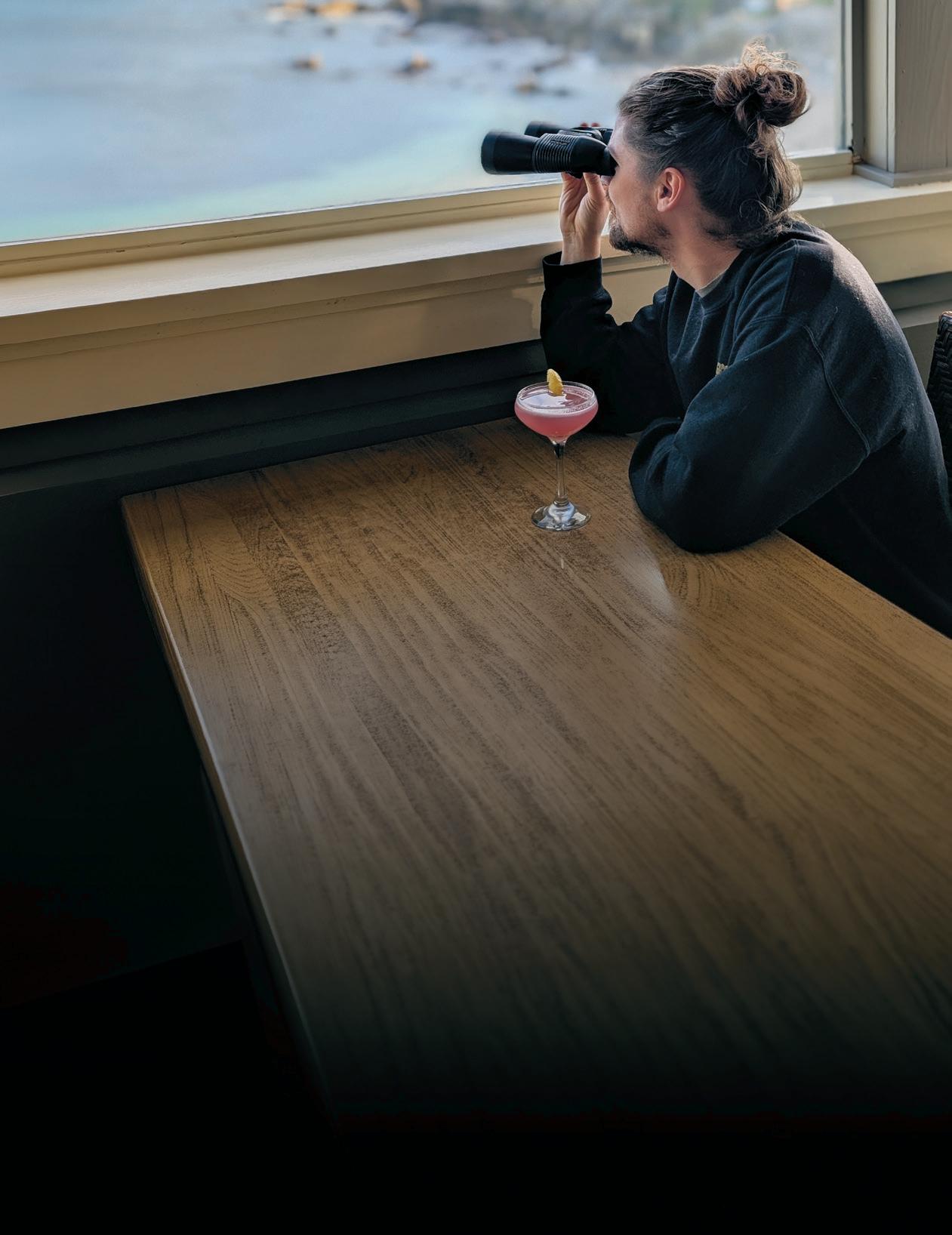Steven Wales eyes the horizon at The Beach House at Lovers Point while sipping The Metropolitan with 17 Mile Gin, cranberry and elderberry liqueur.