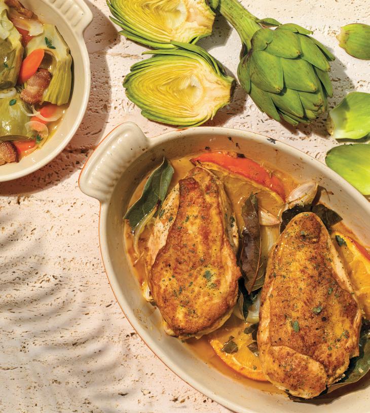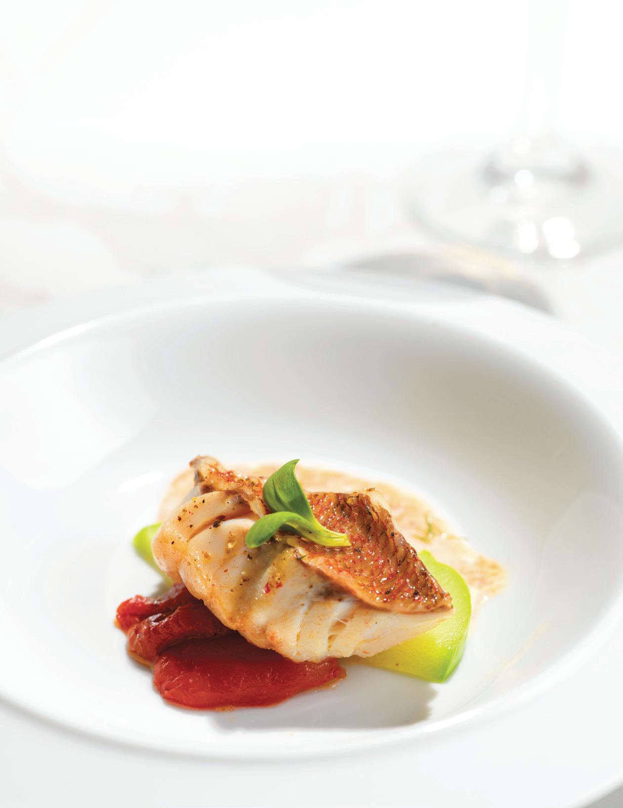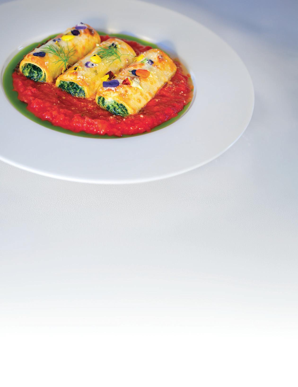 Bloomsdale Spinach Cannelloni 22 Rockfish with Guajillo Herb Beurre Blanc and Roasted Tomatoes 24 Chicken Breasts in Avocado Leaf and Orange with Artichokes Barigoule