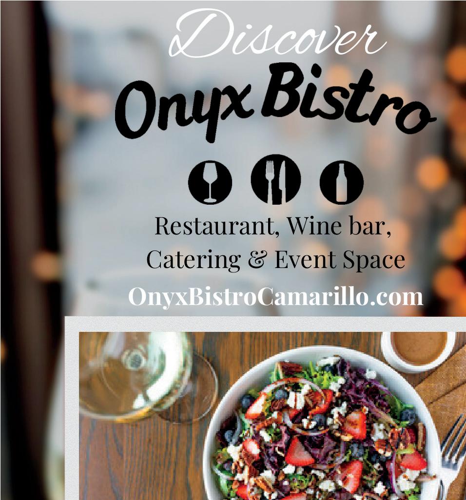 Woman owned and operated, serving a casual but re ned seasonal menu made with locally sourced ingredients and paired with local craft beer and wine. Indoor and outdoor seating, live music on weekends, and brunch o ered Sundays. 2390 Las Posas Rd. Suite H | Camarillo 805-991-7356 | onyxbistrocamarillo.com