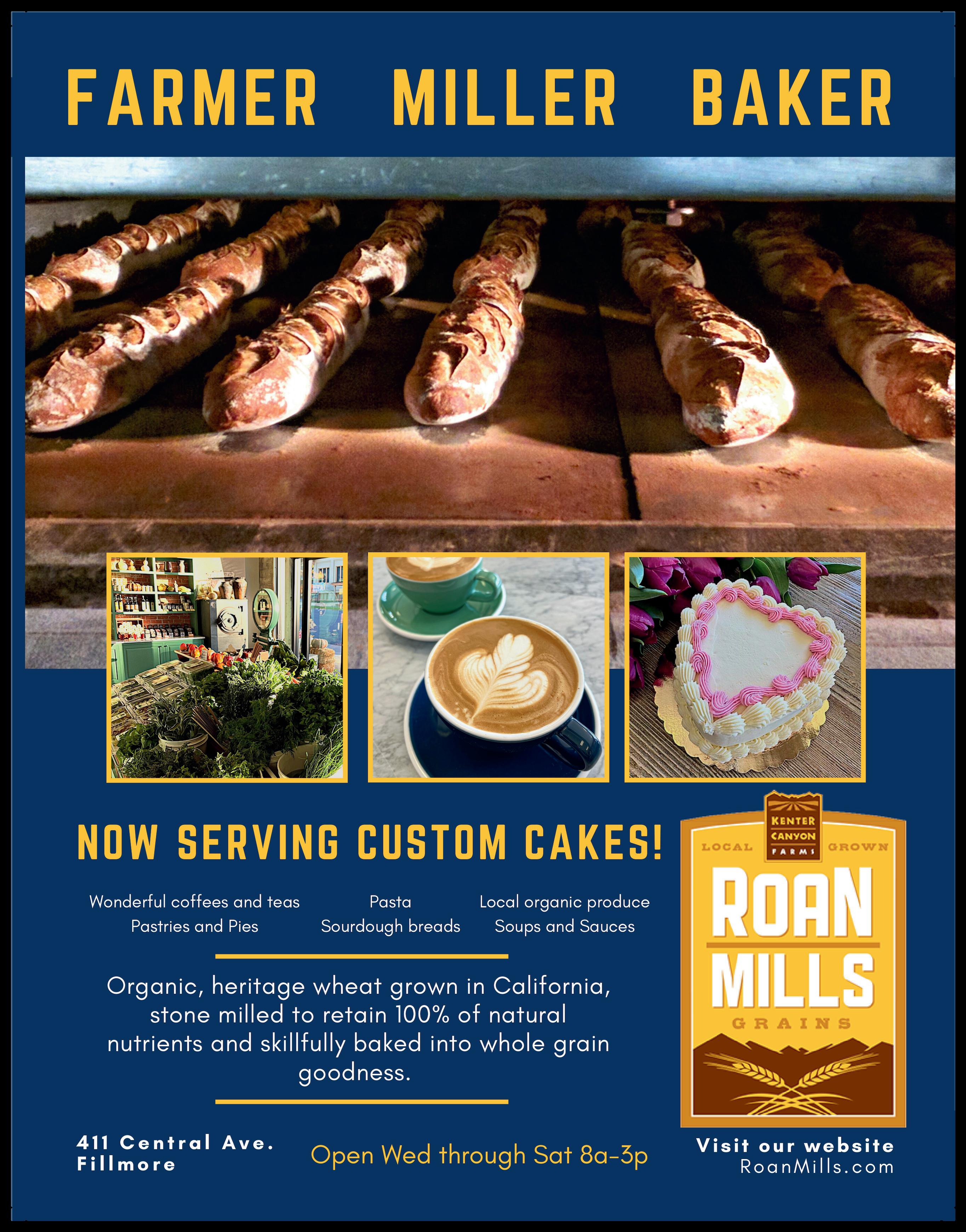 California’s first land-to-loaf bakery, Roan Mills grows the wheat, mills the flour, bakes the bread and makes the pasta. Stop in at their bakery in historic downtown Fillmore and taste the difference.