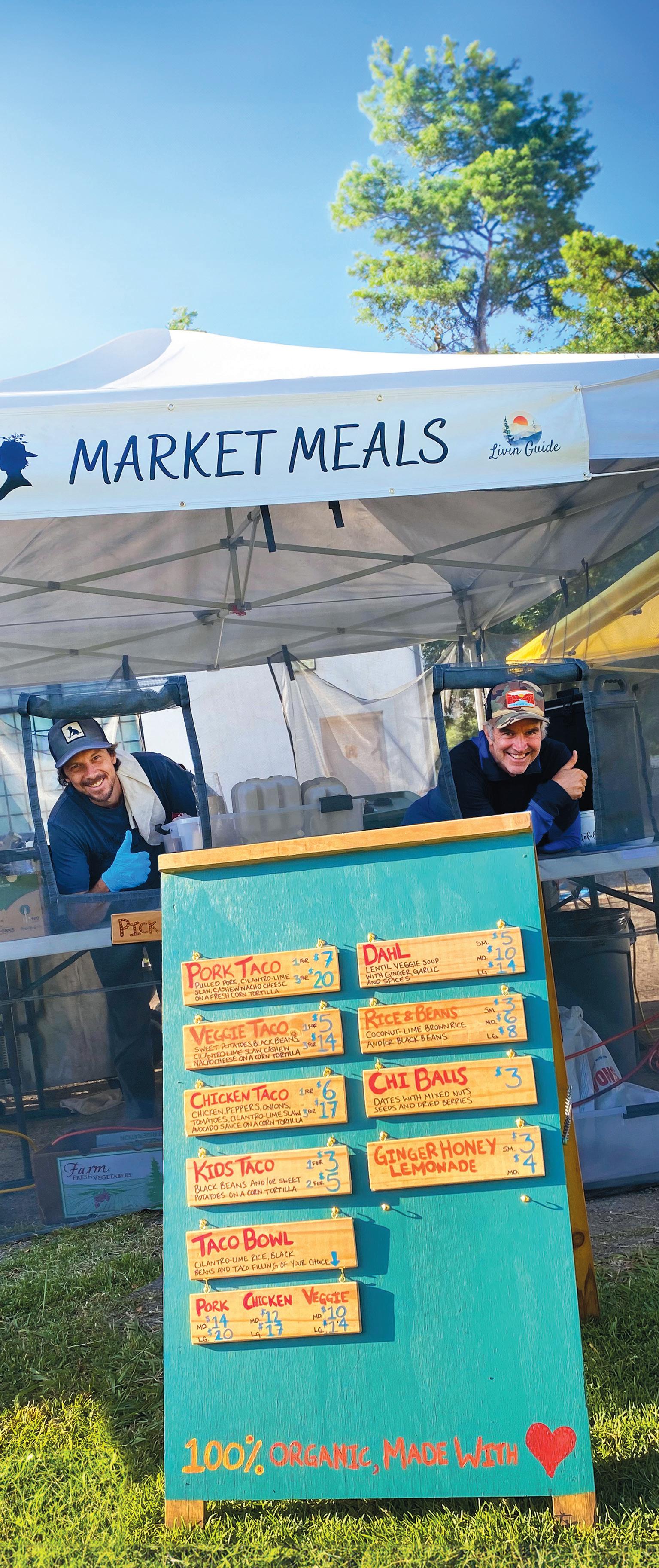 Steve Sprinkel, one of the original board members of the farmers’ market, explains that it’s hard to get up to full efficiency at a new market. “It takes a while to develop,” he says. “[Heath] is designing his menu around a fresh, whole model. It’s about fresh products and cooking fresh. He’s walking his talk: buy local, fresh and all of those things.”