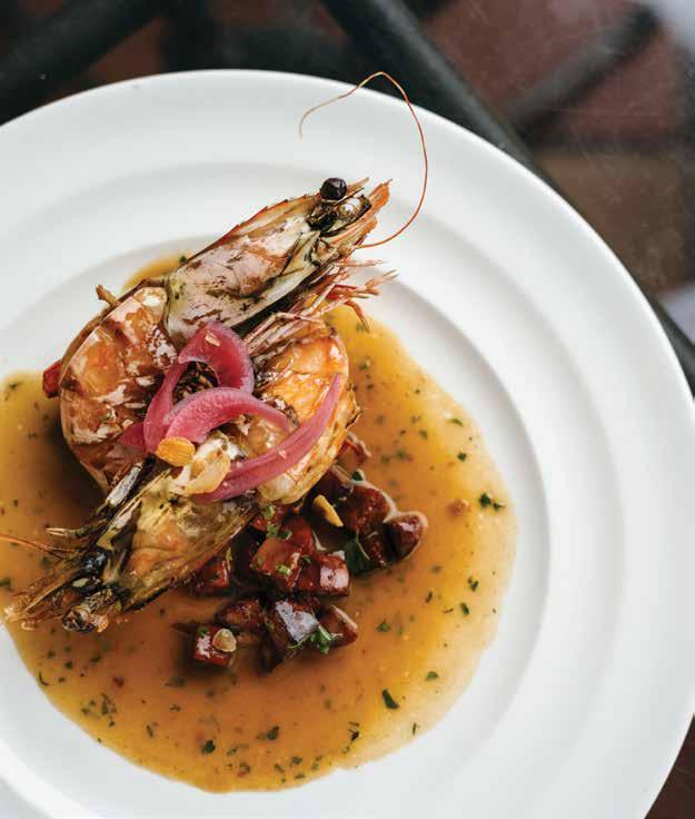 Find live spot prawns in season February through September at Catalina Offshore Products or the Tuna Harbor Dockside Mar ket and make them even sweeter by bast ing them with saffron, garlic, and butter.