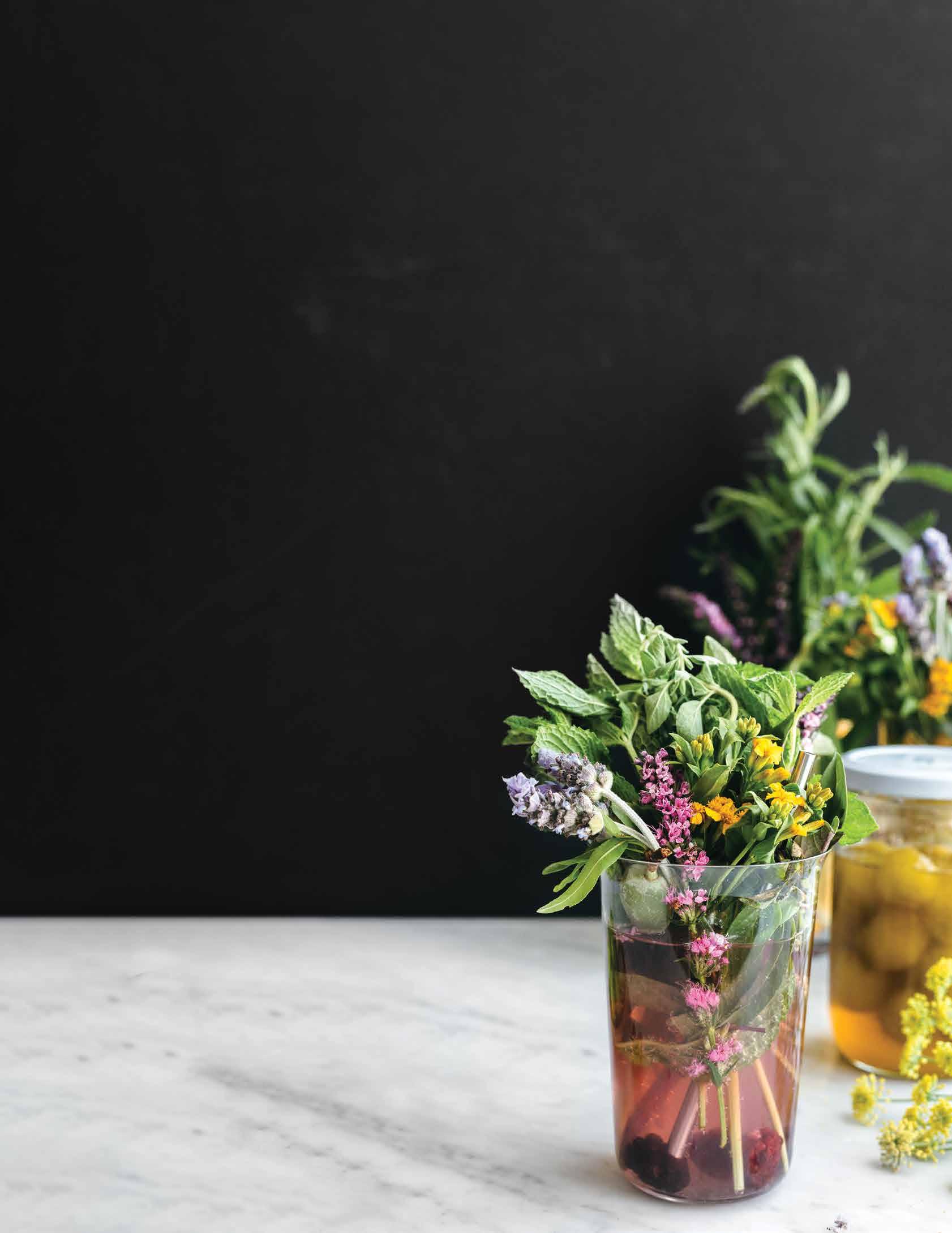 Herbs and their blossoms infuse the soda with heady flavors, deliver a floral aroma with every sip, and create a stunning presentation. Look to the farmers’ market for seasonal inspiration and select bunches of fresh sage, basil, oregano, thyme, and lavender and their blossoms. Pick an assortment of herbs for oneof-a-kind aromatic blends in every cup.