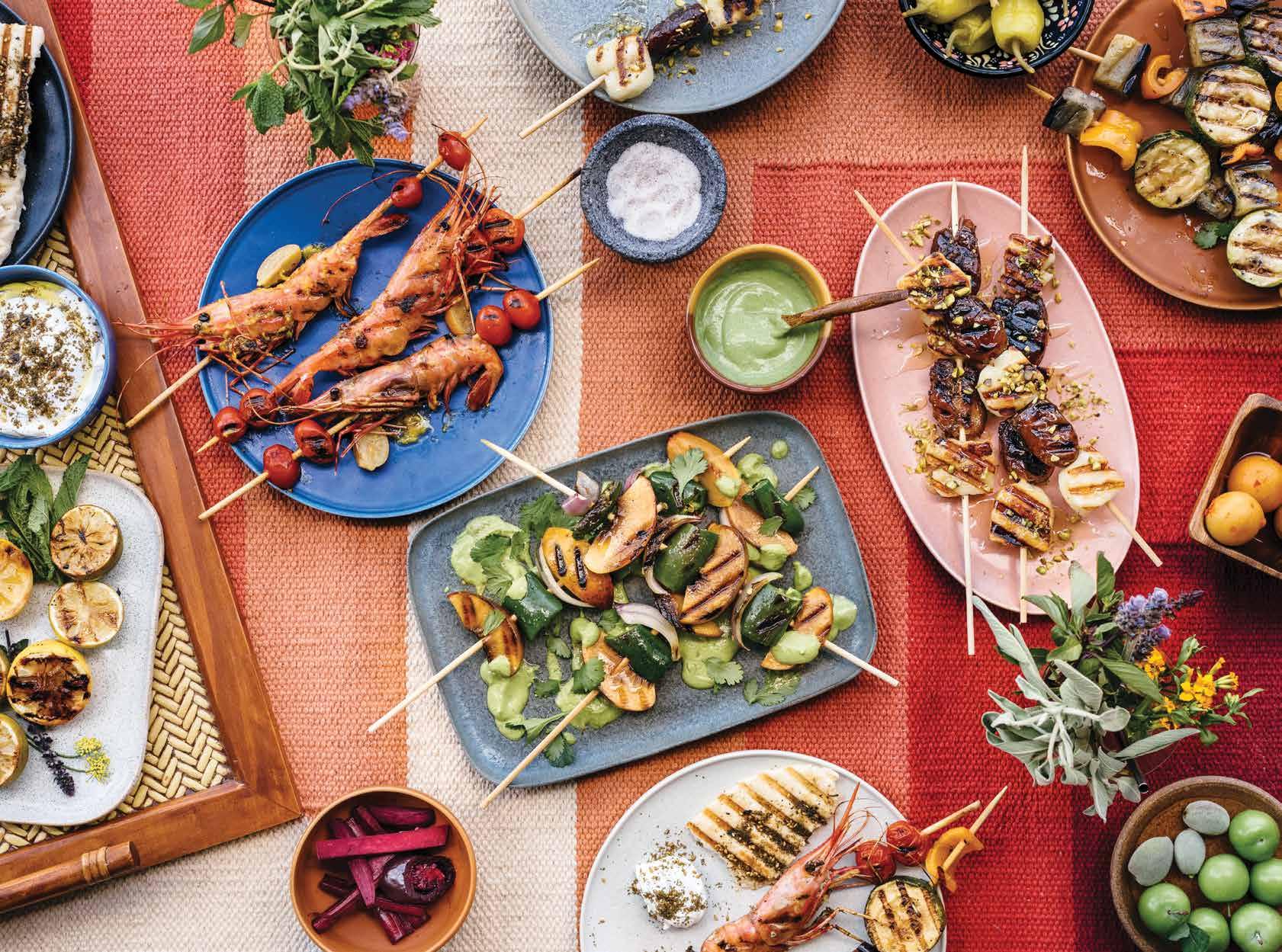humankind’s first culinary technique and remains our most universal. It’s primal and naturally celebratory, whether watching the flames of an asado burn on the hillsides of Argentina or sitting on a beach in the Arabian Gulf eating cardamom and black pepper-marinated mishkak with tangy tamarind hot sauce.