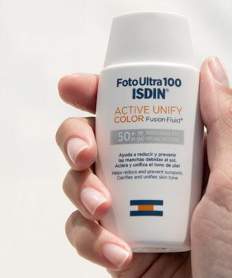 Para quienes presentan melasma o manchas solares, ISDIN propone el FotoUltra 100 Active Unify Fusion Fluid SPF 50+.