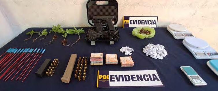 logrando la detención de cuatro imputados por el Delito de Microtráfico, todos chilenos mayores de edad, y además, la incautación de 45,98 gramos de cannabis sativa, 64,05 gramos de cocaína base, una pistola 9 milímetros, 35 cartuchos, un vehículo, $783.110 de dinero en efectivo, cuatro balanzas digitales y 18 silbadores con estruendo, de tipo pirotecnia.