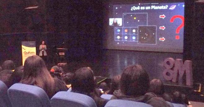 La actividad, dirigida a alumnas de los colegios de la Red Q, contó con la presencia, a través de videollamada, de Tere Paneque, astrónoma y divulgadora científica, quién conversó con las estudiantes sobre la creación de los planetas, además de los altos y bajos de ser una mujer en el mundo de la astronomía.
