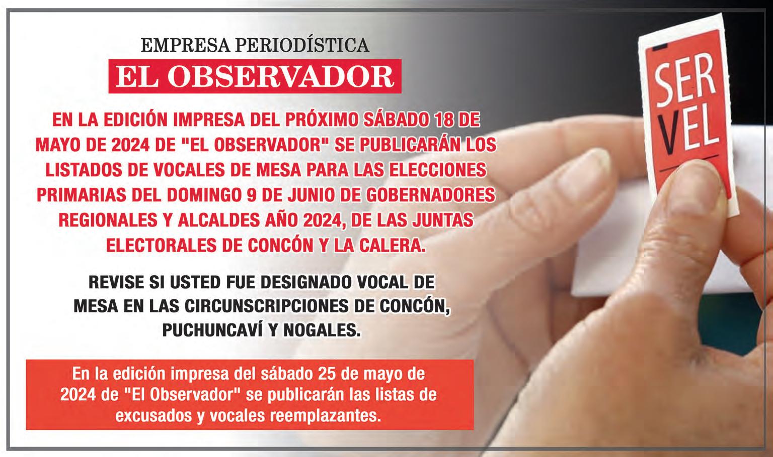 se atreve y lo dice todo www.observador.cl DIARIO ELECTRÓNICO EDICIÓN VESPERTINA EL OBSERVADOR R Lunes 13 de Mayo de 2024 - Año LIII Nº 4.764