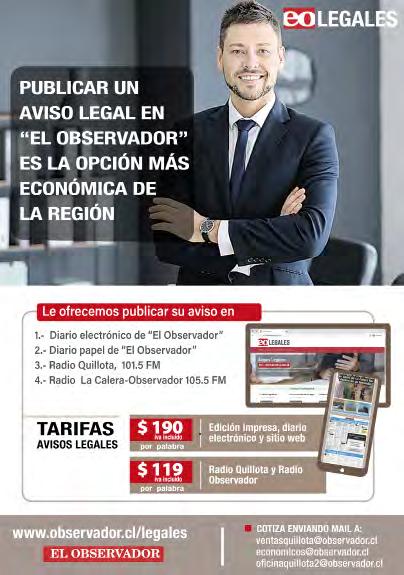 causa en la que participará, correo electrónico del participante y un número telefónico para el caso en que se requiera tomar contacto con él durante la subasta y será enviado con una anticipación mínima de 4 días hábiles a la fecha fijada para el remate. Dicho documento será acompañado materialmente al tribunal dentro del plazo fijado en las bases para el pago del precio de remate, solo en caso de que el postor o tomador se adjudique el bien subastado. Una vez constituida la garantía, los postores recibirán correo electrónico indicando el día y hora del remate y el ID y clave de la videoconferencia. Es de cargo de los interesados en participar en la subasta disponer de los elementos tecnológicos y de conexión remota necesarios para participar en ella. Demás bases y antecedentes en Juicio Ejecutivo “Banco de Chile con Rojas” Rol C-755- 2024. Secretaría.
