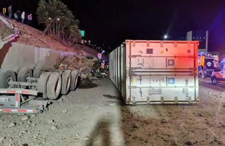 Por razones que se investigan, el conductor de un camión desbarrancó y volcó en la temida “curva de la muerte”, ubicada en las cercanías del mall de la comuna.