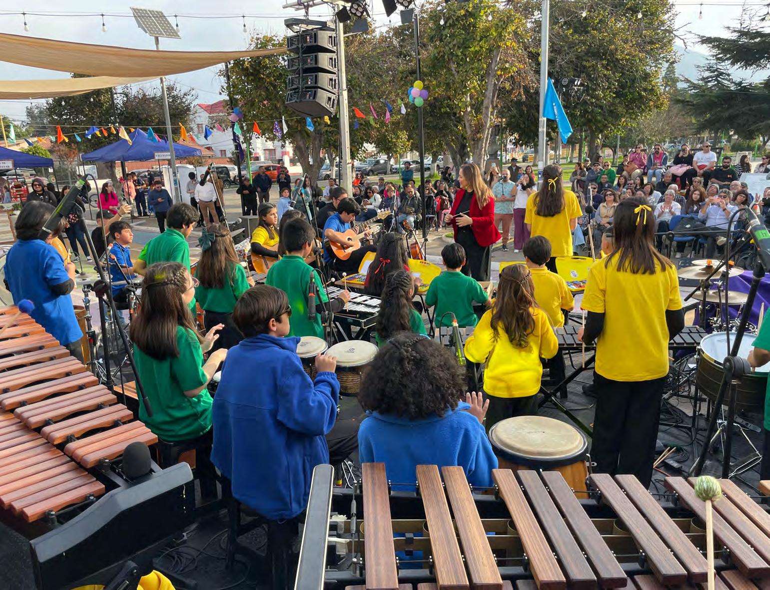 M inutos más tarde, el escenario comenzó a llenarse de color con la llegada de los jóvenes musicos del Ensamble Temporía, agrupación musical que nació el año 1996 en la comuna de la Cruz como taller de iniciación musical con metodología Orff y Kodaly y en la