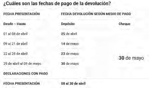 Cabe señalar que, según el calendario de la Operación Renta 2025, el próximo proceso de devoluciones se realizará el 14 de mayo, para quienes completaron el proceso durante el segundo período (entre el 09 y el 21 de abril) y que opten por transferencia electrónica. Los pagos en documentos bancarios (cheque) se realizarán el 30 de mayo, independiente de la fecha de presentación de la Declaración de Impuesto a la Renta.
