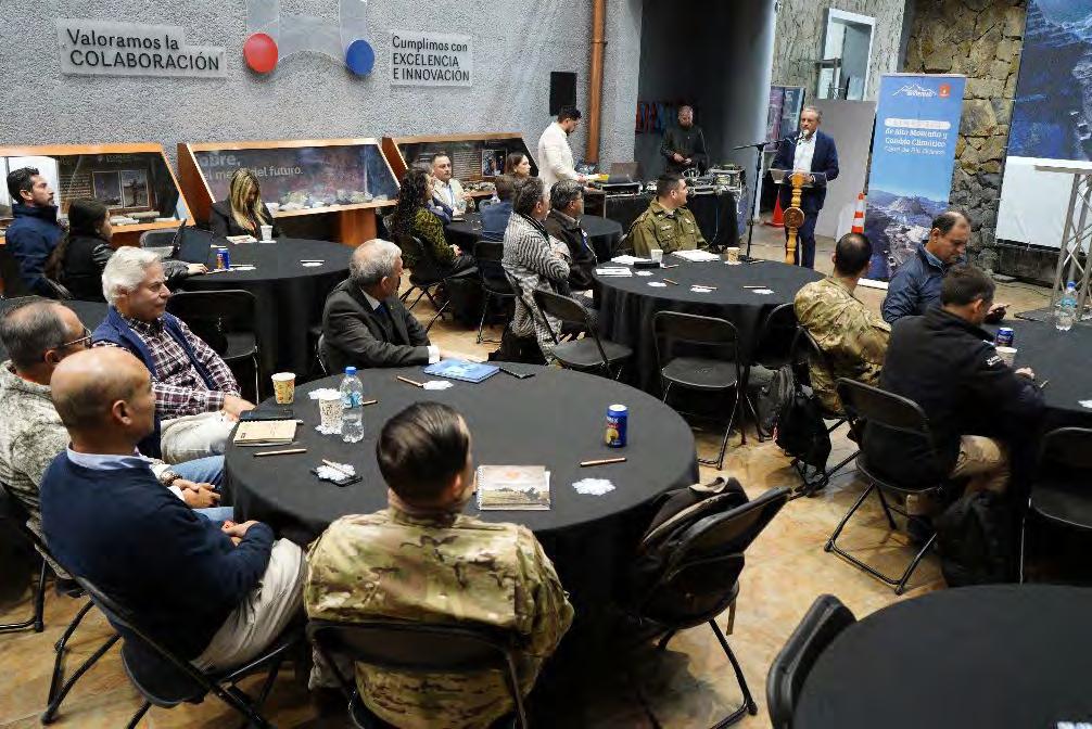 La actividad se denominó Simposio Alta Montaña y Cambio Climático Cajón de Río Blanco y fue organizada por la Gerencia de Seguridad y Salud Ocupacional, a través de su Dirección de Estudios, Vulnerabilidades y Emergencias, DEVE. El encuentro se realizó en el Edificio Institucional (EILA) de Codelco en Los Andes y contó con la participación de representantes de instituciones como Sernageomin, Escuela de Alta Montaña del Ejército, Carabineros, Bomberos, Servicio Agrícola y Ganadero, Vialidad, además de encargados de emergencia y medioambiente de las Municipalidades de Los Andes, San Esteban y Calle Larga. Además se hicieron presentes autoridades como el delegado presidencial provincial, Cristian Aravena, el seremi de Salud, Jaime Ayala y ejecutivos de Codelco Andina, encabezados por el gerente general de la División, Lindor Quiroga. S obre el encuentro, el máximo ejecutivo de Andina comentó que “esta es una instancia clave porque nos permite reunir conocimiento especializado, identificar mejores prácticas e integrarlas a nuestra operación. Para nosotros, la seguridad de nuestros trabajadores/ as, así como la de nuestros vecinos y vecinas, es lo más importante”.
