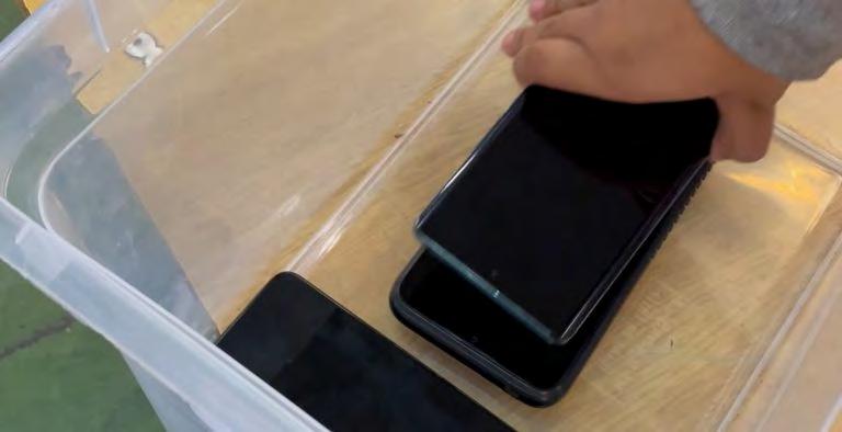 Según el protocolo, al ingresar al establecimiento los estudiantes entregan sus celulares de forma voluntaria, los cuales son resguardados por el equipo de convivencia. Solo en casos excepcionales, como actividades pedagógicas o situaciones de urgencia, se permite su uso bajo supervisión.