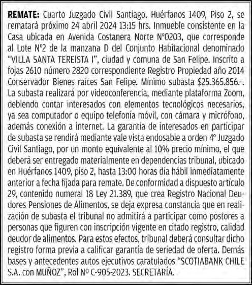 culo 881, ambos del Código de Procedimiento Civil. Se fija para tal efecto la audiencia del octavo día contado desde la última notificación a las 10:00 horas, en dependencias del Tribunal, ubicado en calle Esmeralda Nº 650, La Ligua, debiendo coordinarse, oportunamente, con el Ministro de Fe del Tribunal.