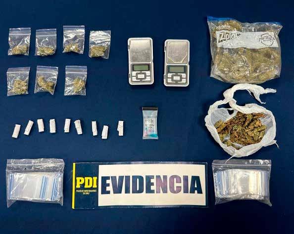 En el operativo la PDI incautó un total de 10,32 gramos de clorhidrato de cocaína; 98,15 gramos de cannabis sativa, además de elementos para la dosificación y especies asociadas al ilícito investigado.