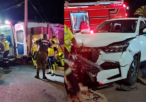 Al menos 10 lesionados fue el saldo preliminar de una violenta colisión entre dos móviles particulares que tuvieron una colisión de alta energía en Avenida Condell esquina calle Arauco a eso de las 22:30 horas del reciente domingo 9 de febrero. Según informó Gestión de Riesgo de Desastres Quillota en el lugar trabajaron personal del Cuerpo de Bomberos Quillota, Quillota te Cuida, ambulancia de SAMU Base Quillota Ssvqp y de otros móviles de salud de las comunas de la Provincia. La colisión de alta energía culminó con uno de los vehículos impactando a un antejardín de una vivienda, por lo que se descartó un atropello dentro del desarrollo de este evento, lo que fue parte de la información inicial en los reportes. Franco Olivares, profesional de turno de la oficina de Gestión de