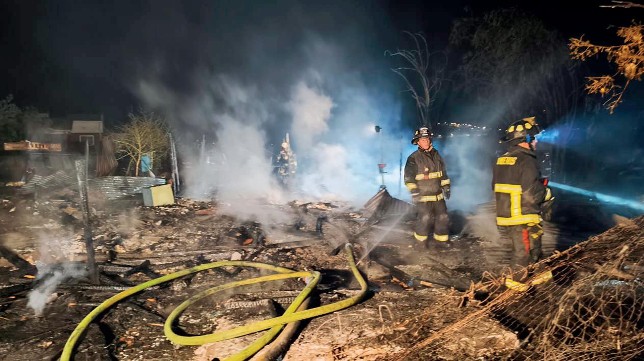 Un incendio estructural destruyó por completo dos viviendas de material ligero durante la madrugada de este lunes en un predio ubicado en el límite de las poblaciones Ríos de Chile y Antumapu, en la comuna de Quillota.