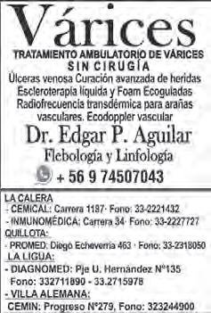 URGENCIAS: domingos y festivos Fono 33- 2310790 Diego Echeverría 417 Fono 33- 2310790 Quillota