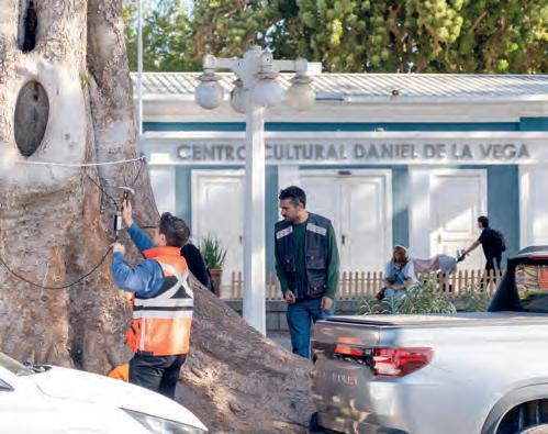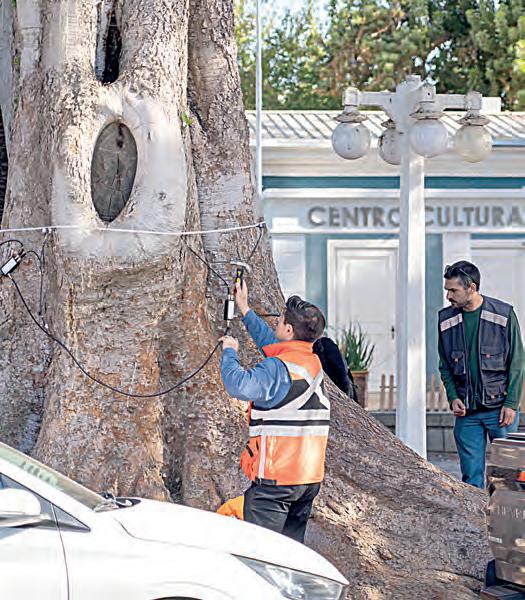 tario o alguna dificultad en su estructura, para que nosotros podamos realizar los manejos correspondientes”, indicó. Según detalló el profesional, uno de los objetivos principales es analizar árboles emblemáticos y de mayor antigüedad presentes en la comuna, anticipándose a eventuales complicaciones estructurales que pudieran presentarse durante la temporada de invierno. En la misma línea, el ingeniero agrónomo Álvaro Moreno s eñaló que el procedimiento se realiza mediante ondas ultrasónicas que recorren el interior del t ronco. A partir de distintas mediciones, el sistema genera datos que posteriormente son interpretados mediante un software especializado para determinar el estado general del árbol. Con la implementación de esta tecnología, el municipio busca fortalecer el monitoreo del arbolado urbano y avanzar en estrategias preventivas que permitan proteger tanto el patrimonio natural como la seguridad de los vecinos.