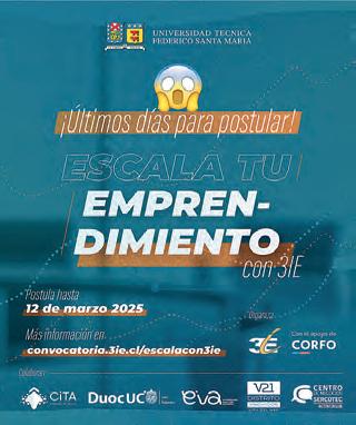 El Instituto 3IE, incubadora de negocios de la Universidad Técnica Federico Santa María, tiene abierta la convocatoria para su nuevo programa “Escala tu Emprendimiento”, una iniciativa de incubación de nueve meses orientada a startups innovadoras que busquen fortalecer su crecimiento comercial a nivel nacional e internacional. Cofinanciado por Corfo, el programa entregará herramientas estratégicas, asesoría personalizada y acceso a redes de financiamiento para potenciar emprendimientos con alto potencial de escalabilidad.