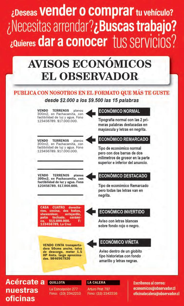 La mejor oferta está en los avisos económicos de EL OBSERVADOR