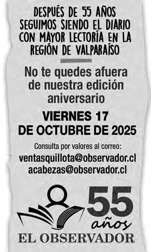 Coordinadora Comercial: Verónica Tapia Herrera ventasquillota@observador.cl Fono: +56 9 8887 9747 - Casa Matriz - Quillota