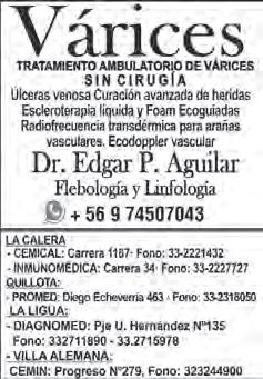 REHABILITACIÓN FÍSICA kinesiterapia a domicilio MIGUEL A. BIJIT S. KINESIÓLOGO 992996511 Atención público en general Fonasa / Isapre / Particulares convenio Caja 18 de Septiembre Quillota : Inalto Blanco Nº 470 Teléfonos : 33- 2266408 / 33-2260370 Atención lunes a viernes Abogados APOYO DEFENSA Abogados con grado de Magíster dedicados a: - Defender sus causas PENALES - Causas de FAMILIA: Divorcios, pensiones de alimentos, visitas, paternidad. -Ubicados en el centro de Quillota. Facilidades de pago Fono: +56991264805 www.apoyodefensa.cl PROFESIONALES La mejor oferta está en los avisos económicos de EL OBSERVADOR www.oxigenochile.cl
