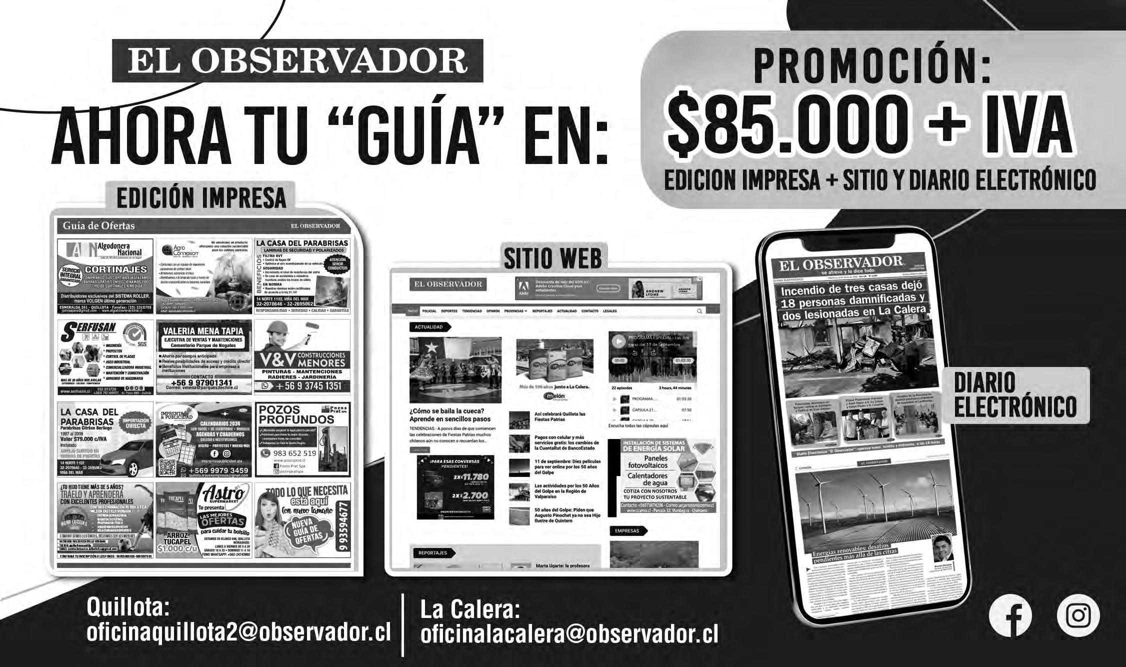Coordinadora Comercial: Verónica Tapia Herrera ventasquillota@observador.cl