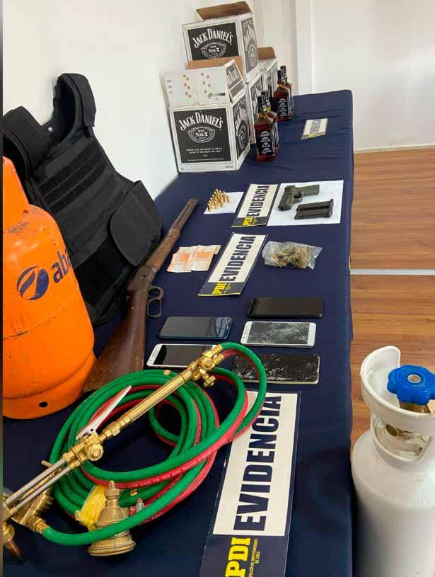 “se realizaron diversas diligencias investigativas y de análisis criminal tendientes a dar con la ubicación de las especies, adoptando el procedimiento de rigor en un inmueble del sector sur de la ciudad. Durante el operativo, se logró detener a un hombre y una mujer de 25 y 23 años de edad, respectivamente, logrando recuperar parte de lo sustraído, además de la incautación de una pistola, una carabina, un chaleco antibalas, municiones y un equipo de oxicorte”.