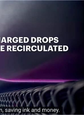 para crear un impulso de presión que propulsa una gota de tinta. En los cabezales de impresión CIJ, la tinta circula por el cabezal continuamente. Al salir la tinta de la boquilla, el chorro se separa en gotas que imprimen y gotas que se recirculan. No debemos confundir las capacidades exclusivas de reciclaje continuo de gotas de los cabezales CIJ con las de los cabezales DOD «recirculantes». Los cabezales de impresión DOD recirculantes ofrecen un flujo constante de tinta en el interior del cabezal para evitar que las boquillas se sequen y se obstruyan, por el riesgo de extinción del chorro y otros defectos. La recirculación también ayuda a mantener la tinta a una temperatura más uniforme, lo que es especialmente importante en los cabezales térmicos. Esta ca-