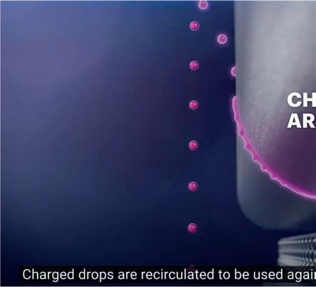 gotas producidas. La velocidad de disparo y la alta redondez de las gotas, sumadas a una colocación precisa de las gotas, proporcionan una calidad de impresión precisa sin los satélites y la niebla atribuibles al impacto de las turbulencias del aire en los sistemas de chorro DOD que producen gotas de pequeño tamaño.