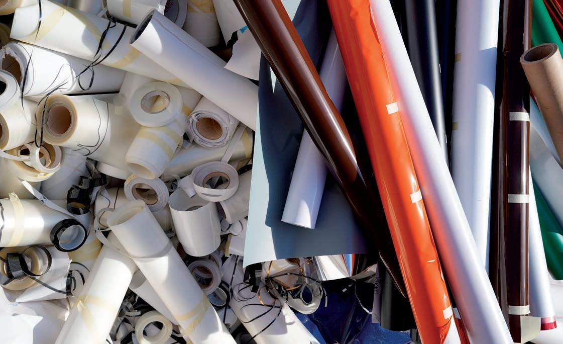 residuos de pegamento. Un material que puede ser impreso tanto en serigrafía como en digital, convirtiéndose en un elemento decorativo de gran impacto para escaparates y espejos de tiendas, oficinas y ejercicios públicos, o simplemente tallado para aportar privacidad elegante y de diseño.