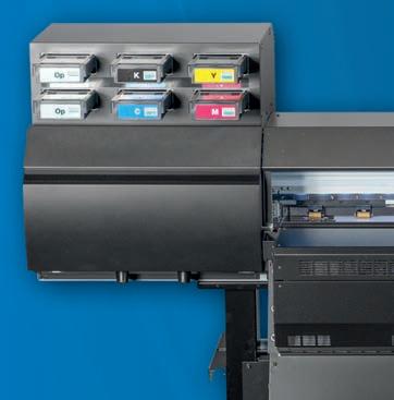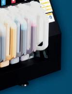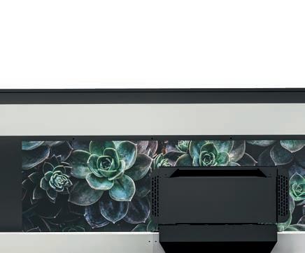 textiles y posibilidades creativas. Sus planchas de impresión de hasta 24 pulgadas son fáciles y rápidas de cambiar. La impresora puede ajustar automáticamente la altura de la placa para crear una distancia óptima entre los cabezales de impresión y el textil.