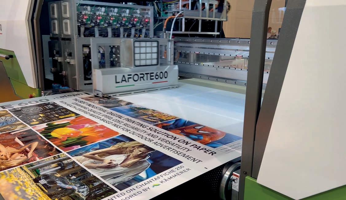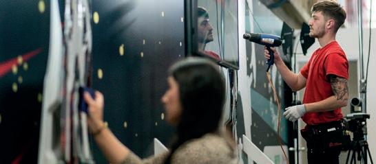 de bobina a bobina, pero esta es mucho más rápida, el doble que nuestras otras máquinas de 5 m. Solo tardamos un día en imprimir en ella todos los gráficos del estand de Fujifilm en FESPA 2023, y todo ello sin comprometer la calidad. Estoy muy contento con los resultados».