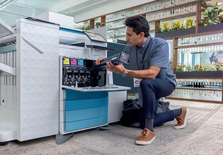 remoto. Esa característica hace que sean válidos para el trabajo remoto y el modo hibrido, monitorizando el sistema de impresión desde la nube, que permite la supervisión remota, combinada con el servicio automatizado, alertas sobre averías y estado y reposición de los consumibles. El usuario esté en su casa o esté en su lugar de trabajo podrá acceder a todos los sistemas de impresión que tenga configurados en su ordenador.