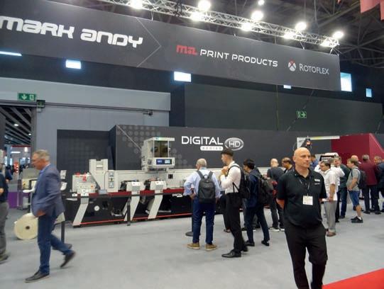 Mark Andy ofreció demostraciones en vivo de la Performance Series S9, optimizada para envases flexibles de bobina media y cambios de formato a alta velocidad; la DSHD HighSpeed 1200, la prensa híbrida de 1200 ppp más rápida del sector, diseñada para aumentar la productividad sin comprometer la calidad; la Pro Series, una máquina flexográfica de alto rendimiento y rentable diseñada para la producción de etiquetas en tiradas cortas; y la Digital Pro MAX, una plataforma híbrida basada en tóner con flexibilidad modular y bajos costes operativos. También se presentó la Rotoflex VLI-700, un sistema de inspección y rebobinado de alta velocidad diseñado para ofrecer precisión y rendimiento en películas, sustratos sensibles a la tensión y aplicaciones complejas de etiquetas. Mark Andy Print Products (MAPP) también presentó una gama completa de consumibles para marcas blancas y equipos esenciales para la sala de impresión, y la icónica