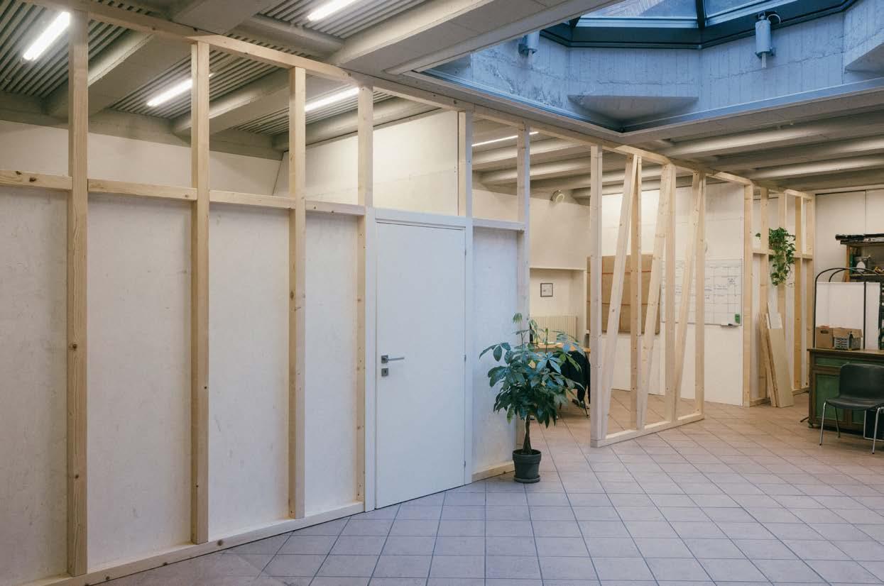 sia come locale occasionale per riunioni e deposito. La richiesta era di riorganizzare lo spazio con risorse molto limitate. Si è quindi deciso di optare per l’autocostruzione, così da ridurre i costi, e per l’utilizzo di soli materiali naturali, facili da assemblare e da dissassemblare, per assicurare un fine vita senza creazione di rifiuti.
