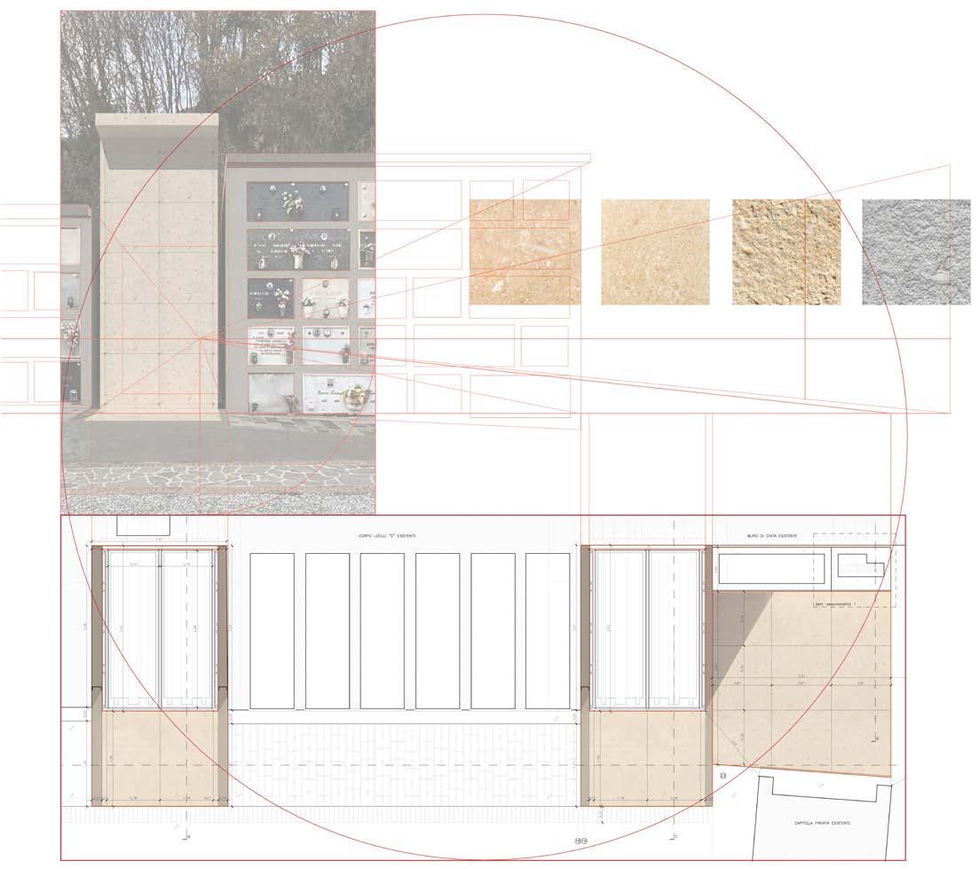 Tale soluzione ha consentito tanto una rapida esecuzione quanto la riduzione della dimensione totale del nuovo corpo loculi consentendo alle nuove “torrette” un distacco sia statico sia linguistico dalla preesistenza.