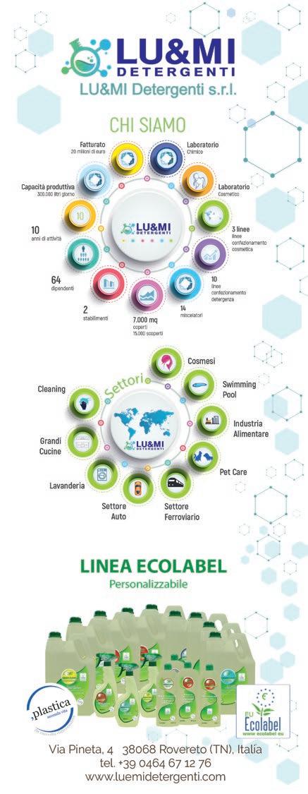 to di riferimento del settore in Italia, partner di fiducia per professionisti del settore cleaning, detergenza industriale e cosmetico. Orgogliosa delle sue radici la produzione è effettuata rigorosamente negli stabilimenti di Rovereto (TN).